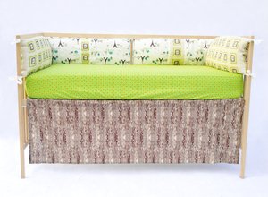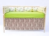 100% Cotton crib bedskirt with 14 inch drop in chocolate brown and cream tree bark print. Each side of skirt is a smooth, straight panel with no pleating or gathering. Corners are hemmed but designed as open splits in order to make it easy to put on and/or take off the skirt. 14 inch drop in chocolate brown and cream tree bark print. Each side of skirt is a smooth, straight panel with no pleating or gathering. Corners are hemmed. Designed as open splits in order to make it easy to put on and/or take off the skirt. Machine wash in cold water. Tumble dry low. Who: Manufactured by Aunt Bucky. Dimensions (inches) : 14". Material : 100% cotton.